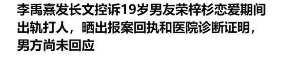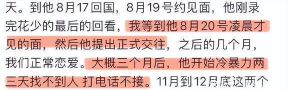确定恋爱关系后,他们恩爱了三个月,但三个月过去后,荣梓杉就开始搞冷处理,还出轨了。李禹熹说,明明前一天还挺好的,结果第二天就找不着人了,整整两三天都联系不上,这样的感情经历把她搞得得了中度抑郁。就在这段时间,李禹熹发现荣梓杉背着她搞外遇,竟然不仅一个人,还一共三个人!李禹熹去找他摊牌,荣梓杉非但不承认,居然还一口咬定不分手。