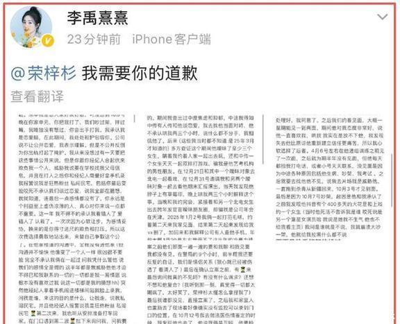 结果,李禹熹真的是没想到,荣梓杉认错全都是耍的,她只是想让她安心,哄完以后就立马去和别的女孩约会了,还在朋友圈发了暧昧的官宣。这不禁让人感叹,荣梓杉真是个时间和感情管理的高手啊。后来,这俩人因为这事又吵起来了,荣梓杉保证跟那些女的断了联系,可等他们又和好后,荣梓杉的公司好像知道了他们的事,竟然给他下绊子,还用手机录下他们没关系的证据。