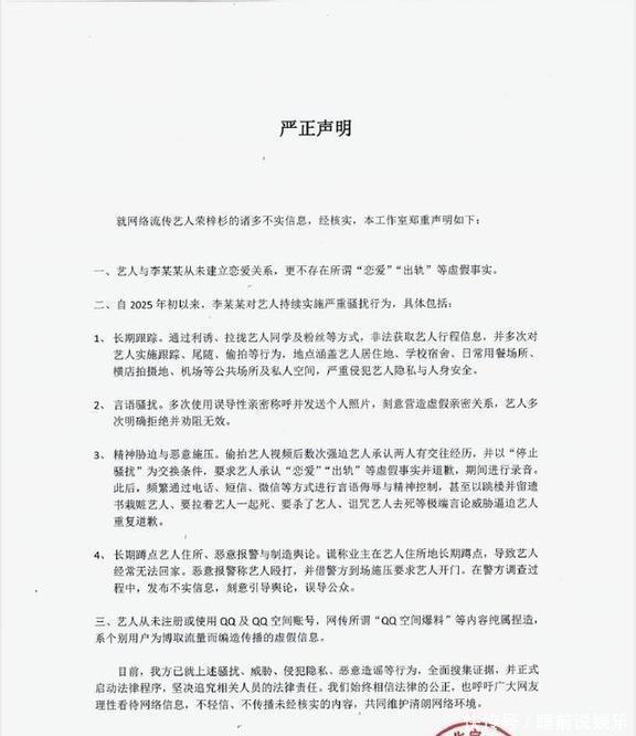 除了这个,工作室还透露,女方年年初开始就一直缠着荣梓杉,长时间对他进行骚扰,还具体讲了骚扰的几种方式。现在工作室已经报警了,警方也开始调查了,后续怎样还得等他们的结果。希望大家能理智一点,别信谣传谣,吃瓜的时候保持冷静。